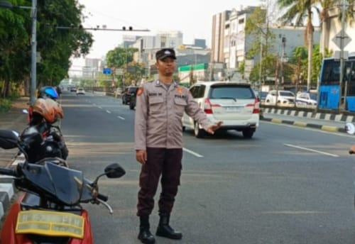 Jakarta Pusat – Panit 1 Samapta Polsek Sawah Besar, Aiptu Anwarudin dan personil piket lainnya melaksanakan kegiatan pengaturan lalu lintas di wilayah hukum Polsek Sawah Besar Jakarta Pusat. Jumat pagi (29/11/2024)
