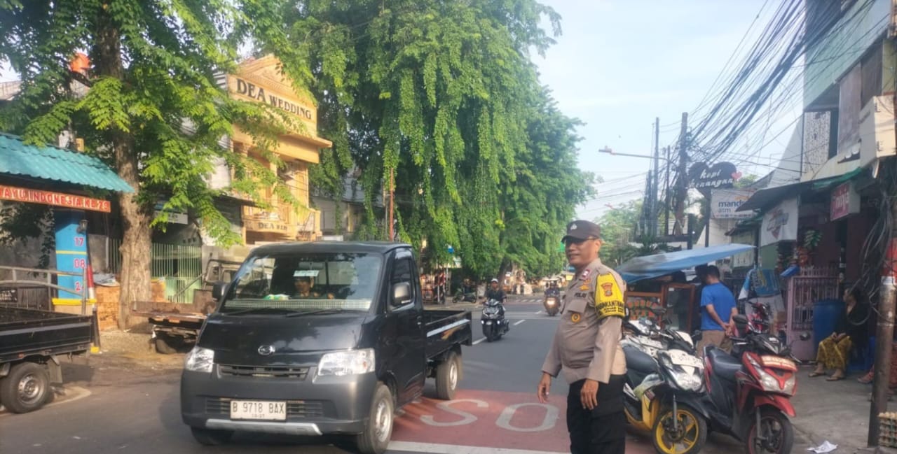 Jakarta Pusat – Bhabinkamtibmas Kelurahan Johar Baru Aiptu Sunarto, melaksanakan kegiatan pemantauan dan pengaturan arus lalu lintas di Depan Sekolahan SMK Kampung Jawa Jakarta Jalan Percetakan Negara II RW 06 Kelurahan Johar Baru, Kecamatan Johar Baru, Jakarta Pusat. Jumat (03/01/2025).