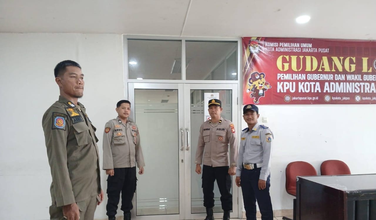 Jakarta Pusat – Jelang pemungutan suara, Polsek Johar Baru dipimpin oleh Ipda Iskandar Sofyan Lubis selaku Perwira Pengendali Posko bersama Anggota Samapta, Satpol PP, dan Dinas Perhubungan (Dishub) melakukan pengamanan terpadu di Gudang Logistik KPU yang terletak di Lantai IV Kantor Kecamatan Johar Baru, Jalan Johar Baru Utara I No 1 RW 03 Kelurahan Johar Baru, Kecamatan Johar Baru Jakarta Pusat. Senin (25/11/2024).