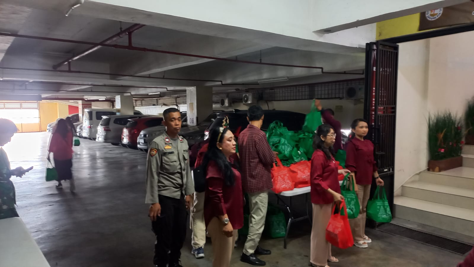 Jakarta Pusat – Bhabinkamtibmas Kelurahan Paseban Aiptu Ari Sanjaya bersama personil unit Samapta melaksanakan monitoring pengamanan kegiatan ibadah perayaan Natal keluarga besar Jemaat GBI Plaza Kenari Jalan Kramat Raya, Senen, Jakarta Pusat. Minggu 15/12/2024)