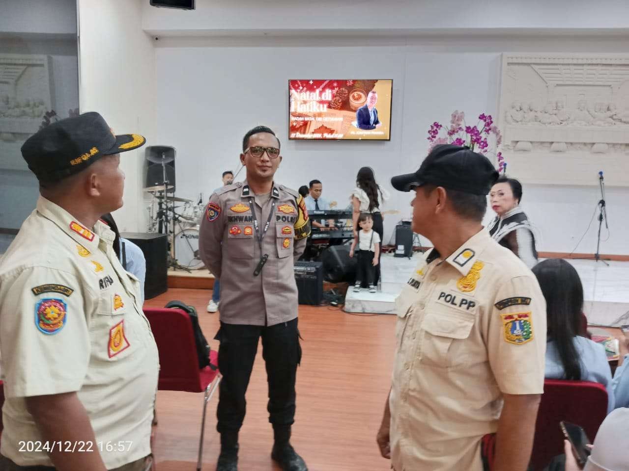Jakarta Pusat – Tiga Pilar Kelurahan Kampung Rawa yang terdiri dari unsur Kepolisian, TNI, dan Pemerintah Kelurahan Kampung Rawa, melaksanakan kegiatan pengamanan Ibadah Natal 2024 di Gereja GBI Getsemani. Jalan Pangkalan Asem Raya RW 05 Kelurahan Kampung Rawa, Kecamatan Johar Baru Jakarta Pusat. Minggu (22/12/2024).