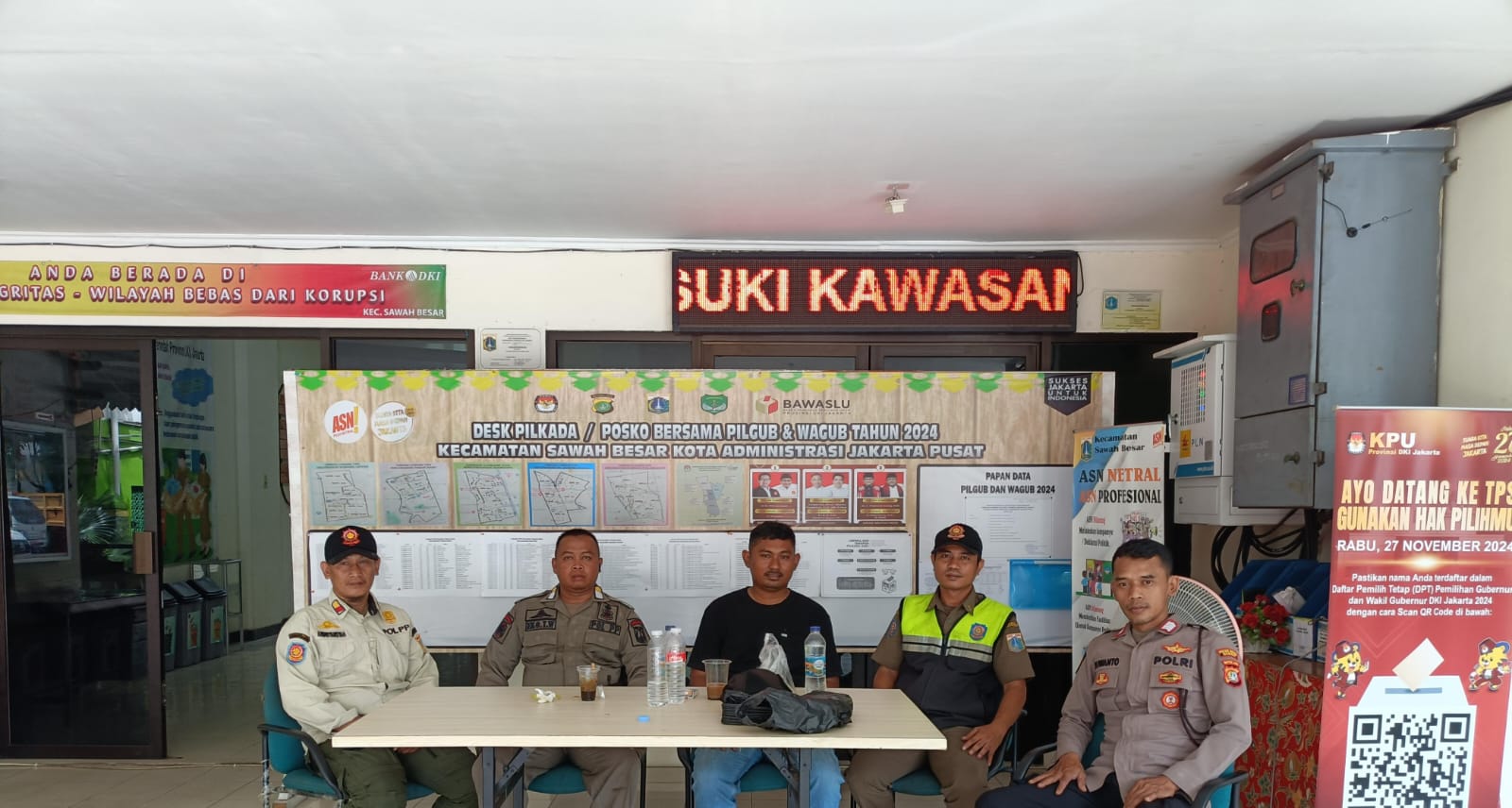 JAKARTA PUSAT – Polsek Sawah Besar bersama unsur tiga pilar melaksanakan pengamanan Rapat Pleno Terbuka hari ke 4 (empat) Rekapitulasi Hasil Penghitungan Suara Pilgub-Wagub DKI Jakarta 2024 tingkat kecamatan. di Aula Lantai 4, Kantor Kecamatan Sawah Besar, Jakarta Pusat. Minggu (01/12/2024), pukul 10.00 WIB