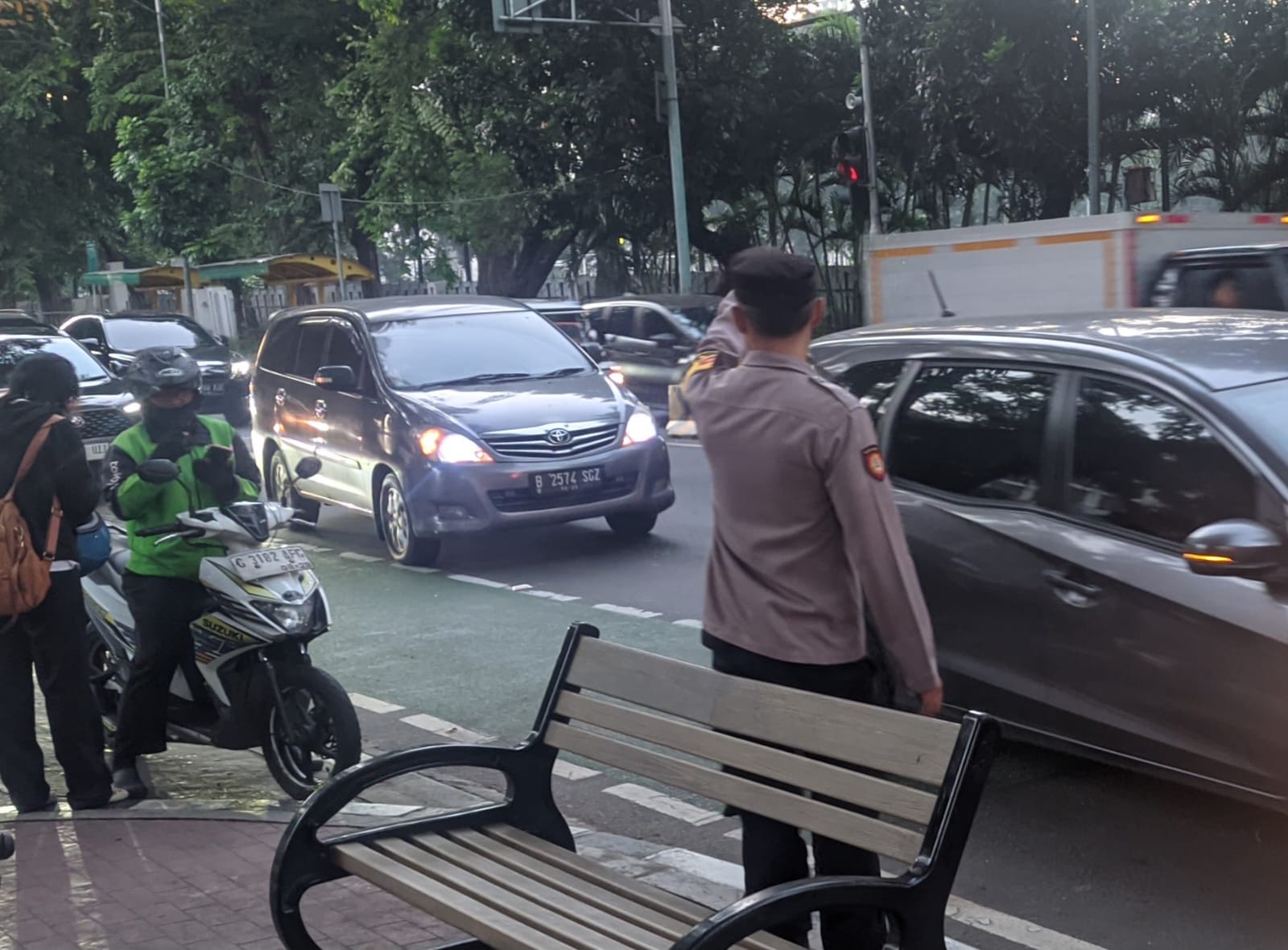Pengaturan arus lalu-lintas ini dilakukan pagi hari untuk memastikan kelancaran arus lalu lintas tanpa hambatan maupun kemacetan, serta memberikan rasa aman bagi para pengguna jalan.