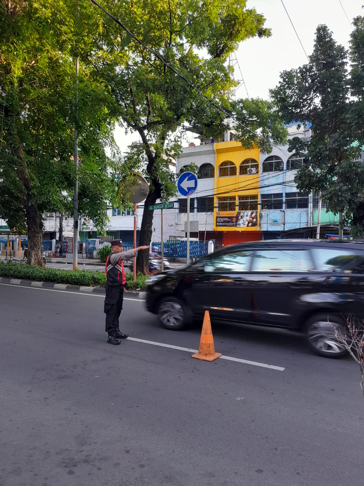 Unit Samapta Polsek Kemayoran melaksanakan pengaturan lalu lintas, membantu masyarakat dan ketika hendak menyebarang jalan, petugas juga melakukan pengaturan terhadap anak-anak sekolahan yang menyebrang menuju Sekolah.