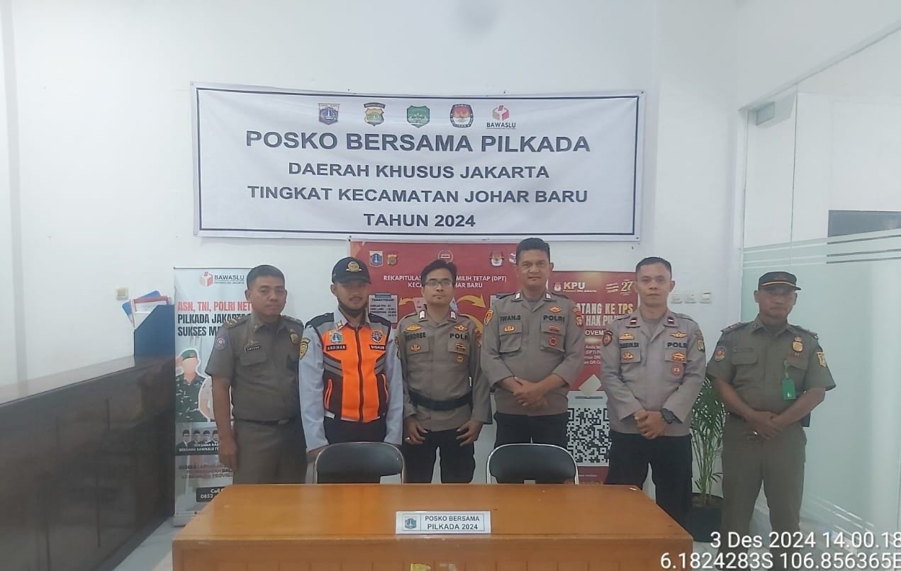Jakarta Pusat – Pada hari Selasa, tanggal 03 Desember 2024, pasca rekapitulasi perolehan suara Pilkada, Polsek Johar Baru dipimpin oleh Iptu Hilal Sugiarto, S.H., selaku Ka Posko bersama Anggota Samapta, Satpol PP dan Dinas Perhubungan (Dishub) melaksanakan kegiatan pengawasan dan pengamanan di Gudang Logistik Komisi Pemilihan Umum (KPU) Lantai IV Kantor Kecamatan Johar Baru, Jalan Johar Baru Utara I No 1 RW 03 Kelurahan Johar Baru, Kecamatan Johar Baru Jakarta Pusat.