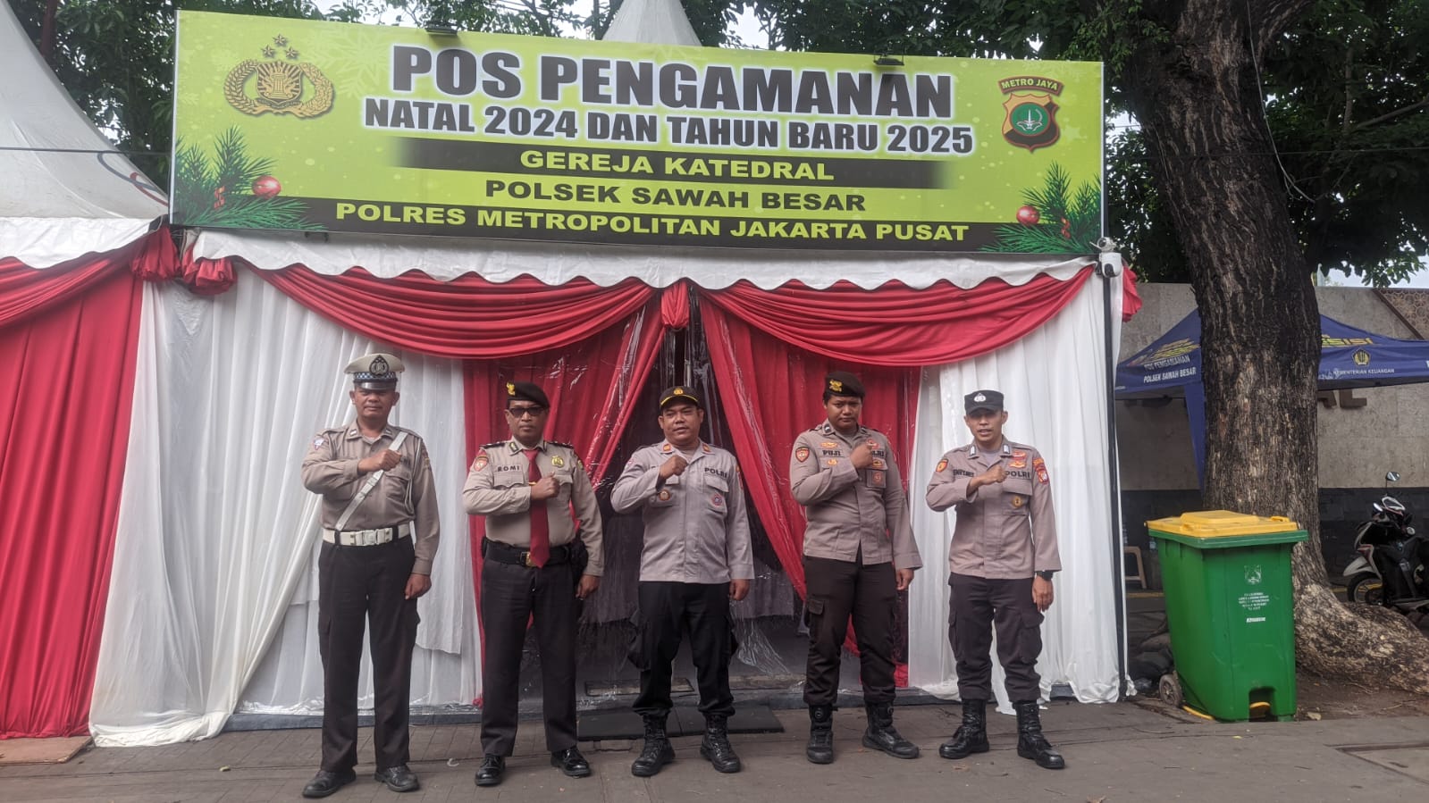 Jakarta Pusat — Kanit Binmas Iptu Dwi Budianto SH.,sebagai Kaposko pimpin apel di halaman Posko PAM Katedral dalam Oprasi kepolisian terpusat Lilin Jaya 2024 di Sawah Besar, Jakarta Pusat. Selasa (31/12/2024)