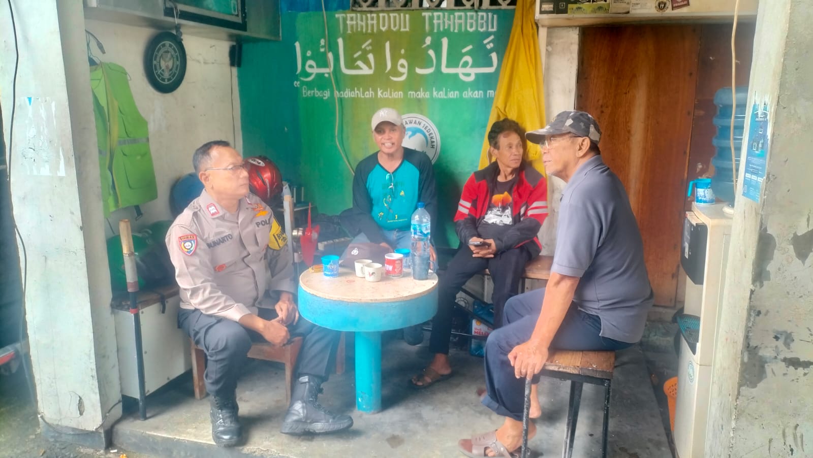 Kegiatan tersebut Aiptu Sunarto selaku Bhabinkamtibmas dan pembina wilayah bertemu dengan Sumarno Ketua RT 10 dan Lucky serta salah satu warga masyarakat setempat untuk saling bertukar informasi terkait kerawanan di lingkungan.
