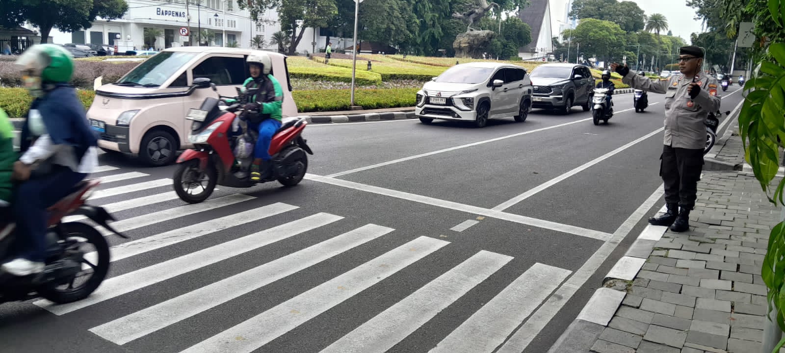 Personel Patmor Menteng Kawal Kelancaran Pagi, Antisipasi Padatnya Arus di TL Diponegoro
