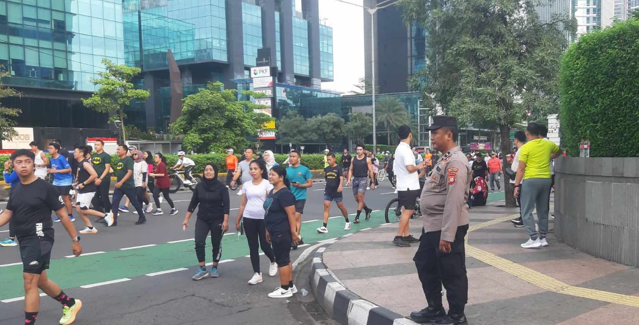 Jakarta Pusat – Personil Polsubsektor Blora Aipda Dadang Supriadi Pemantauan Giat Olahraga Pagi Di Car Free Day Jalan Dukuh Atas Mh Thamrin Menteng Jakarta Pusat Antisipasi Kejahatan Pagi hari. Minggu (12/01/2025)