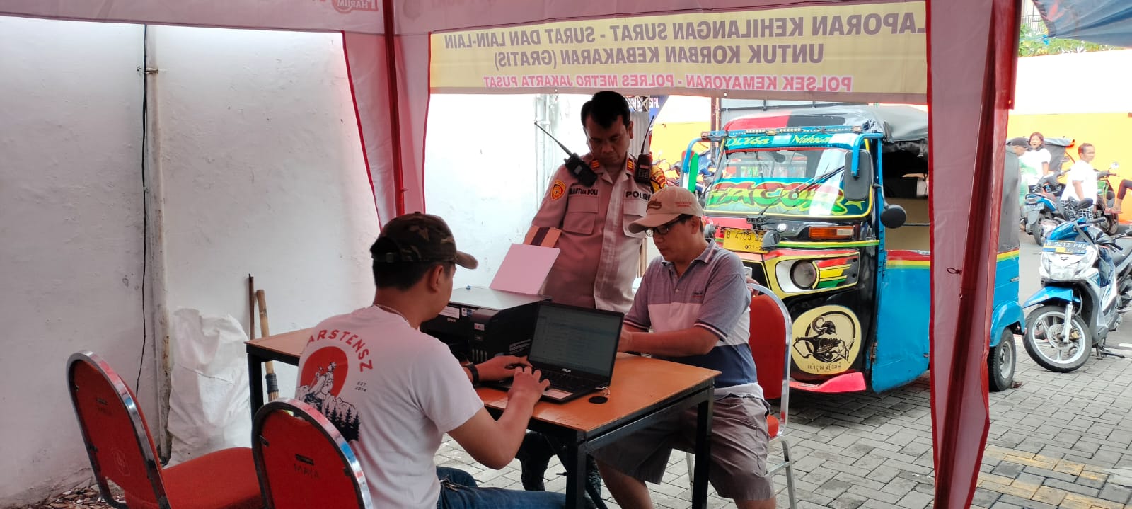 Akp Martua Doli menyampaikan kegiatan ini dilaksanakan oleh Polsek Kemayoran untuk membantu warga yang kehilangan surat-surat berharganya pasca kebakaran yang terjadi di Gang Laler, Kemayoran Gempol, RT. 04 RW. 05 Kelurahan Kebon Kosong Kemayoran Jakarta Pusat.