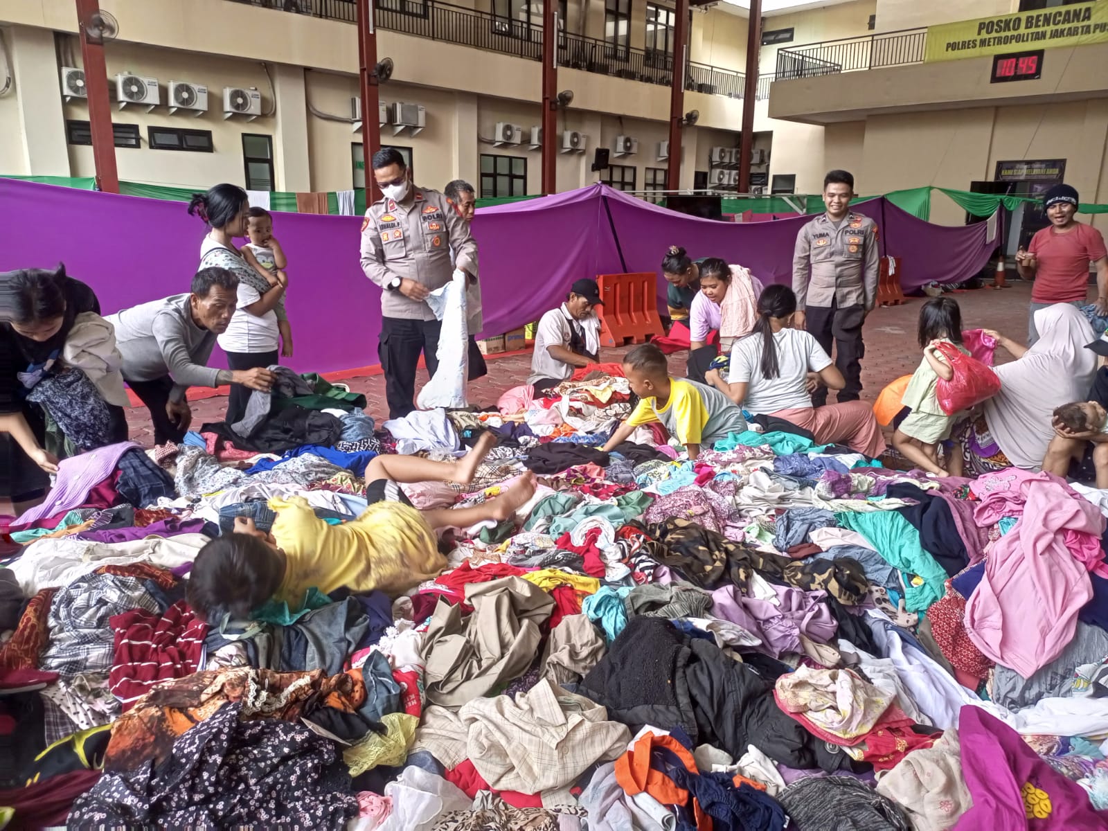 Kapolres Metro Jakarta Pusat, Kombes Pol. Dr. Susatyo Condro, S.H., S.I.K., M.Si., menjelaskan bahwa pembagian pakaian layak pakai ini dilakukan untuk memenuhi kebutuhan dasar warga yang kehilangan harta benda akibat kebakaran.