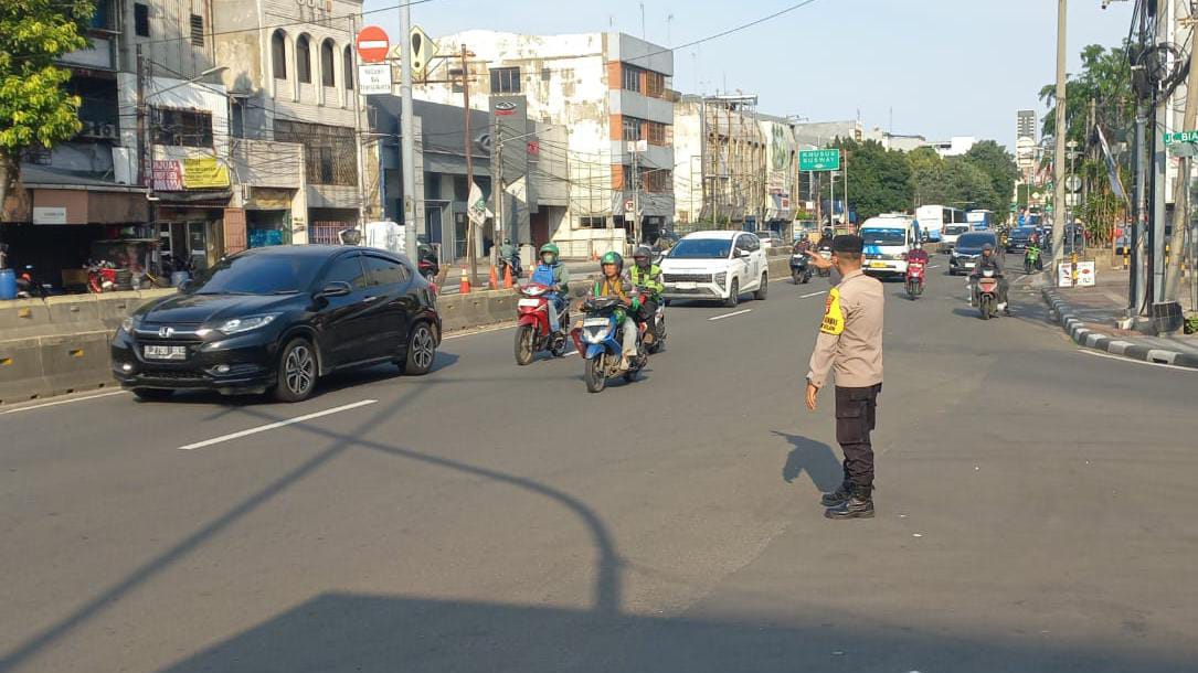 Polsek Metro Gambir Atur Lalu Lintas di Pertigaan Jalan Biak