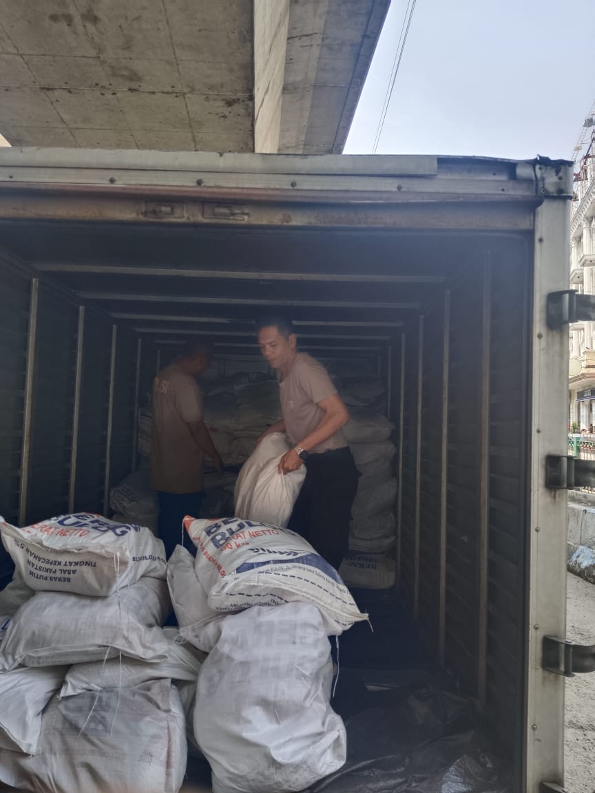 Sebanyak 128 karung beras Bulog diterima dari Polres Metro Jakarta Pusat, dengan rincian satu karung berisi lima kantong dan setiap kantong berbobot lima kilogram. Total beras yang disalurkan mencapai 3.200 kilogram (3,2 ton), diangkut menggunakan satu unit mobil pick up. Beras tersebut kemudian dijual langsung kepada warga dengan harga Rp55.000 per 5 kilogram, sesuai dengan harga resmi dari Bulog, untuk meringankan beban masyarakat dalam memenuhi kebutuhan pokok.
