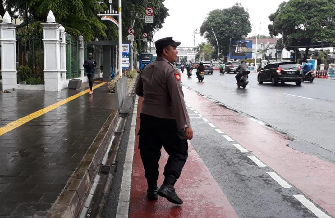 Jakarta Pusat – Unit Samapta Polsek Metro Gambir menggelar patroli kewilayahan di kawasan Jl. Medan Merdeka Timur dan sekitarnya, termasuk area Monumen Nasional (Monas), untuk mengantisipasi tindak kejahatan jalanan dan 3C (curat, curas, curanmor). Kegiatan ini dilakukan oleh tim Patko 1011 pada Sabtu (07/12/2024) pagi dalam kondisi cuaca hujan rintik-rintik.