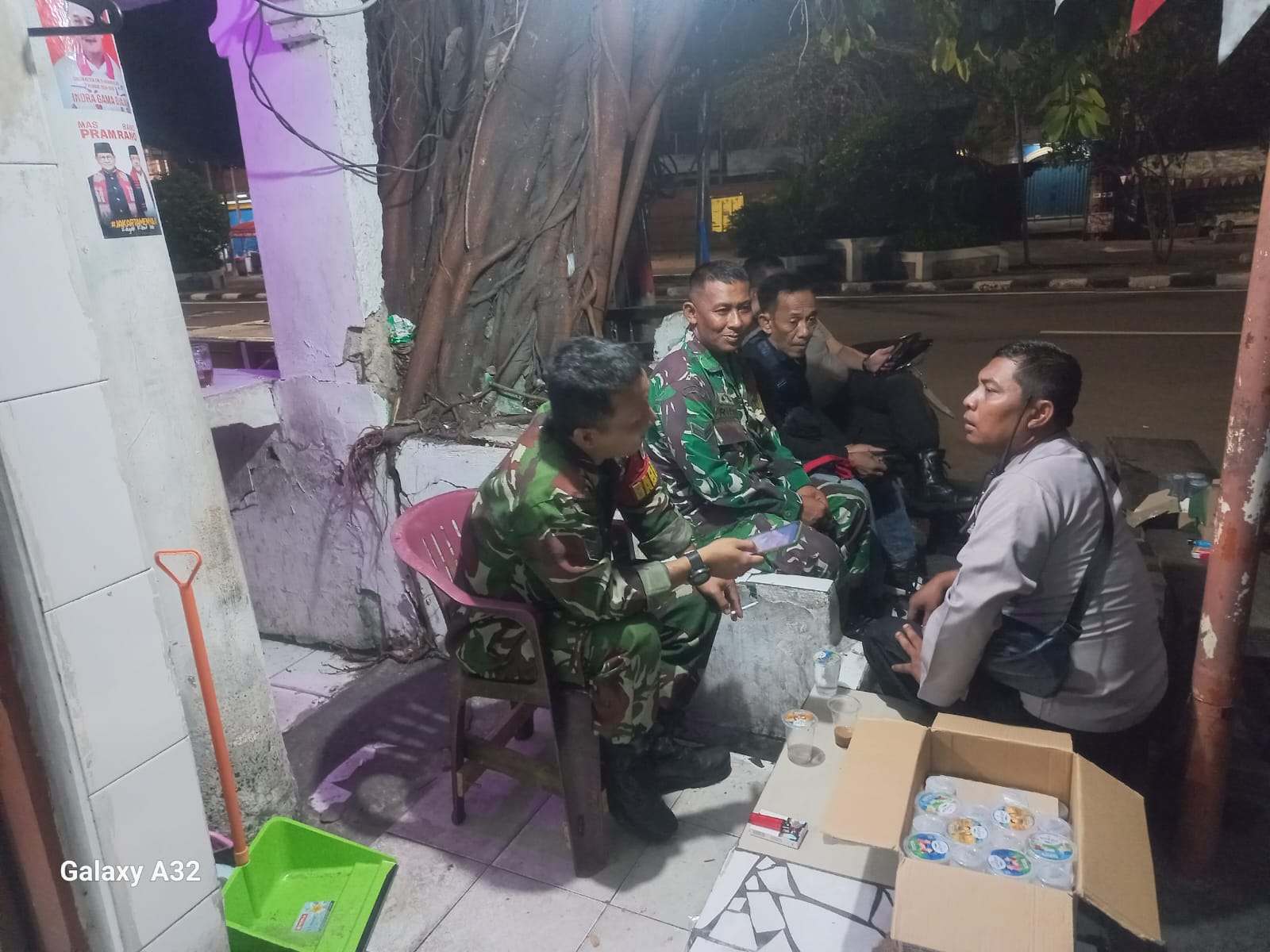 Patroli ini melibatkan personel gabungan dari Polri dan TNI, seperti *Aipda Susanto* (Patko 1013), *Aipda Aris S* (8B), *Serma Herlambang*, dan *Sertu Riyadi*, yang juga berperan sebagai Babinsa Kelurahan Kebon Kelapa. Fokus utama patroli adalah untuk deteksi dini dan pencegahan aksi tawuran serta keributan yang dapat mengganggu keamanan di lingkungan warga.