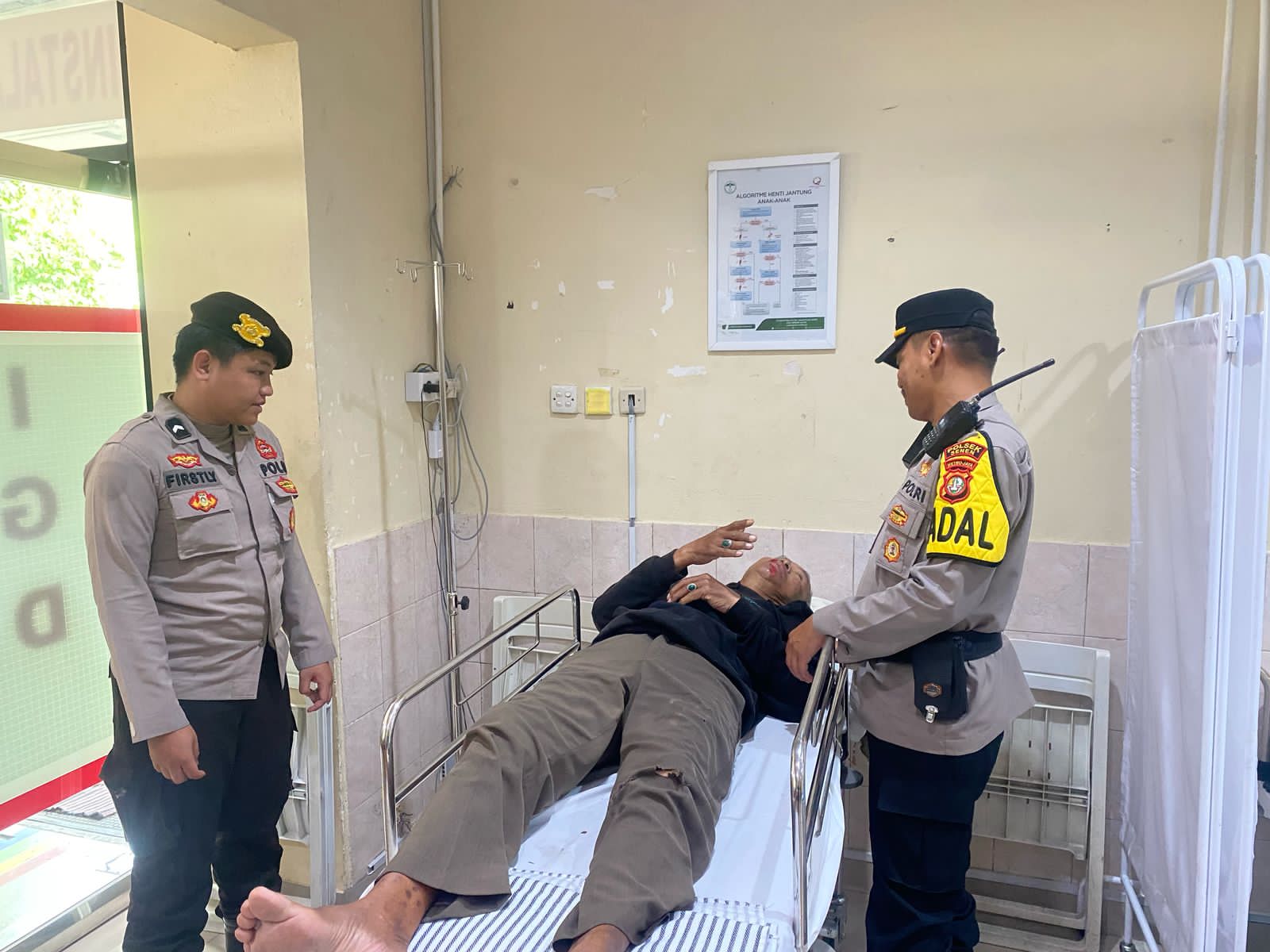Akibat kejadian tersebut korban mengalami luka dikaki,Hidung dan mulut mengetahui hal tersebut Ipda Maskur sigap membantu Bapak Misdianto mengamankan kendaraan korban, kemudian membawa ke Rumah Sakit untuk diobati dan penanganan kesehatan lebih lanjut dari pihak rumah sakit dikarenakan usia bapak misdi tersebut sudah lansia.