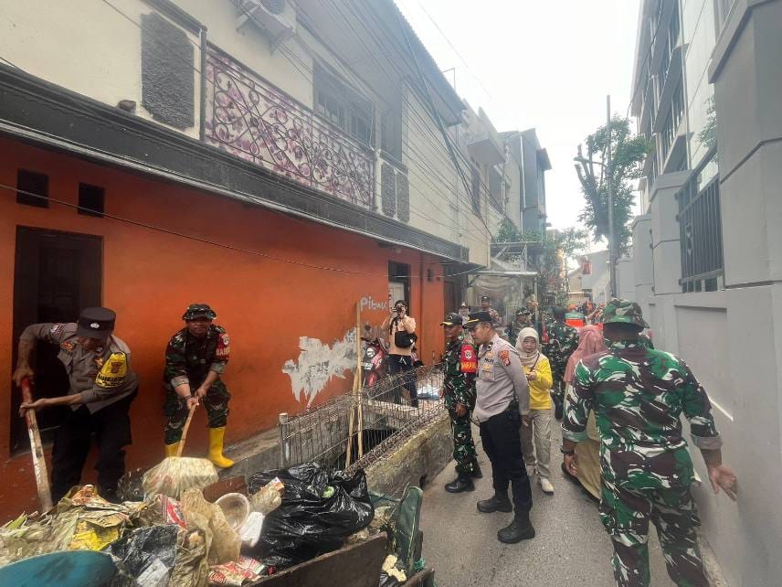 Selaku Bhabinkamtibmas Kelurahan Galur Aiptu Baktiar Emri mendampingi Panit Binmas Ipda Denny Noviyanto, A.Md., hadir dalam Kegiatan Karya bhakti, yang merupakan bentuk nyata sinergitas antara TNI, Polri, Pemerintah Daerah, dan masyarakat dalam menjaga kebersihan lingkungan untuk mencegah terjadinya banjir di kawasan Pasar Gembrong, terutama menjelang musim penghujan.