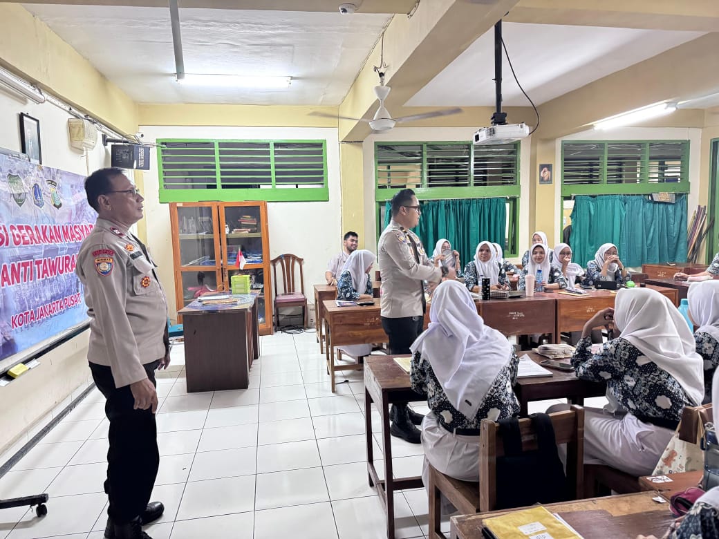 Jakarta Pusat – Polsek Johar Baru Panit Binmas Ipda Deni, A. Md., Kes, bersama Bhabinkamtibmas Kelurahan Johar Baru Aiptu Sunarto dan Anggota Binmas Bripka Tangguh, melakukan kunjungan dan sosialisasi anti tawuran kepada para pelajar SMK Negeri 14 Jakarta Jalan Percetakan Negara II RW 06 Kelurahan Johar Baru, Kecamatan Johar Baru Jakarta Pusat. Jumat (11/10/2024).