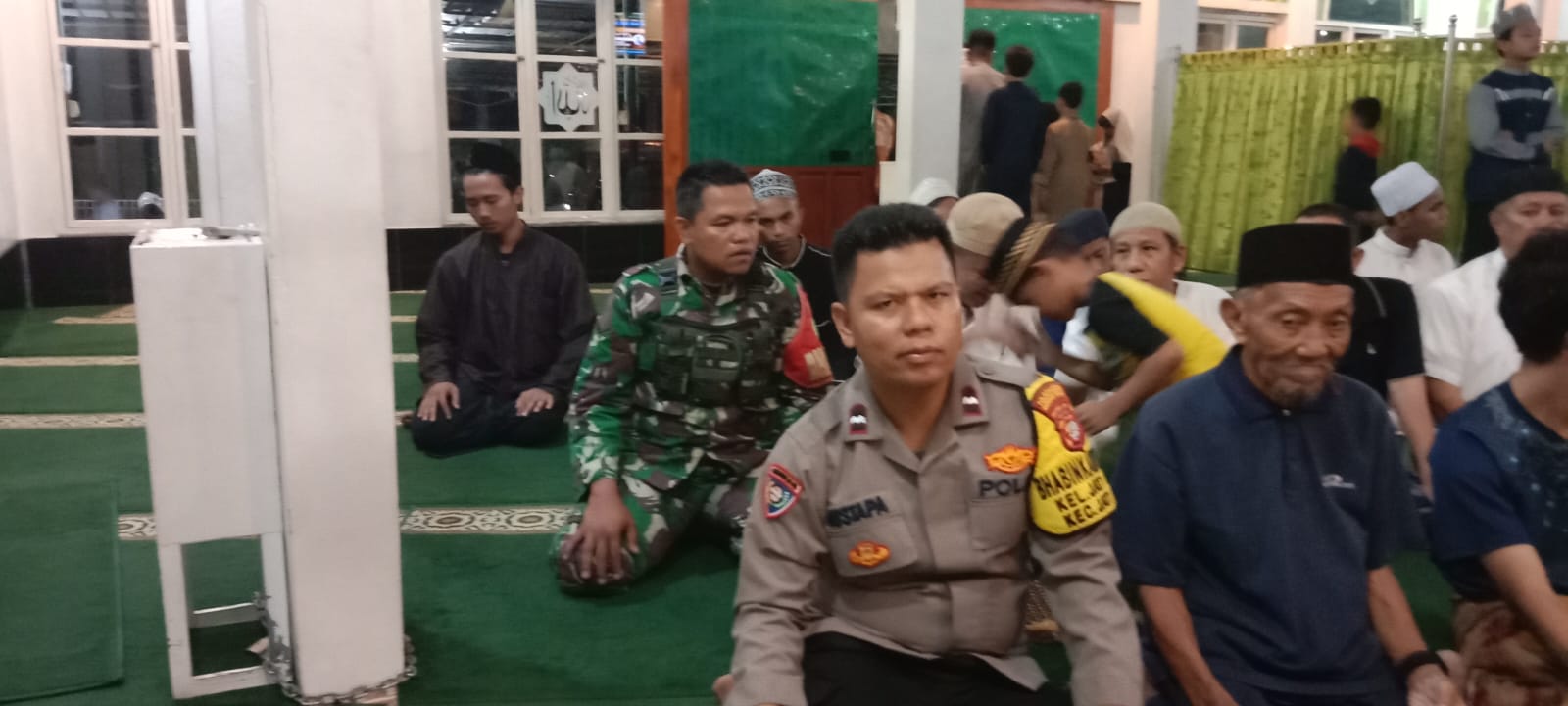 Bekasi , – Bhabinkamtibmas Kelurahan Jatisari, Polsek Jatiasih, Aipda Mustapa Siregar, SH, bersama Bhabinsa Jatisari, Serda Wahyudi, melaksanakan salat Subuh berjamaah di Masjid Al Hikmah, Komplek BDP RT 07 RW 09, Kelurahan Jatisari, Kecamatan Jatiasih, Kota Bekasi.Senin [21/10/24].