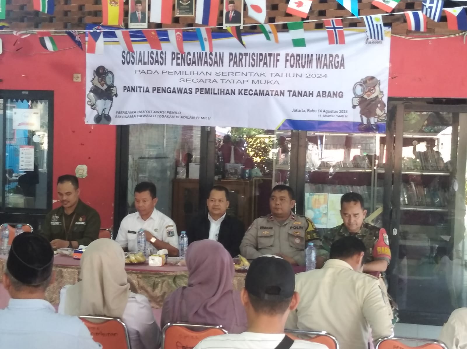 Kegiatan ini diadakan oleh Panwascam Kecamatan Tanah Abang. Selanjutnya Penandatanganan Deklarasi Forum warga kami seluruh elemen masyarakat kecamatan tanah Abang menyatakan siap menjaga keutuhan dan kesatuan RI berdasarkan Pancasila dan UUD 1945, Siapkan mewujudkan Pemilihan Gubenur dan Wakil Gubenur DKI Jakarta Tahun 2024 secara langsung, umum, bebas. Siap menolak segala bentuk penyebaran berita bohong/hoaks, ujaran kebencian, politisasi SARA, Kampanye Hitam, Politik Uang dalam bentuk apapun, Siap mendukung upaya pencegahan yang dilakukan Panwaslu Kecamatan Tanah Abang dan Bawaslu Kota Administrasi Jakarta Pusat, Siap melakukan Pengawasan dan Pencegahan Pemilihan secara partisipatif bersama Panwaslu Kecamatan Tanah Abang dan Bawaslu Kota Administrasi Jakarta Pusat dan Siap melaporkan kepada Bawaslu setiap pelanggaran Pemilihan yang terjadi.