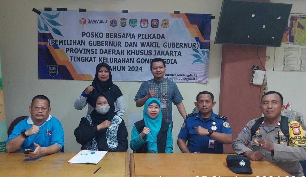 Jakarta Pusat – Bhabinkamtibmas Gondangdia Aiptu Kamidi Bersama Tiga Pilar Di Posko Bersama Kelurahan Gondangdia Jalan Jambu Menteng Jakarta Pusat untuk Menciptakan Pilkada Aman Dan Damai. Senin (28/10/2024)