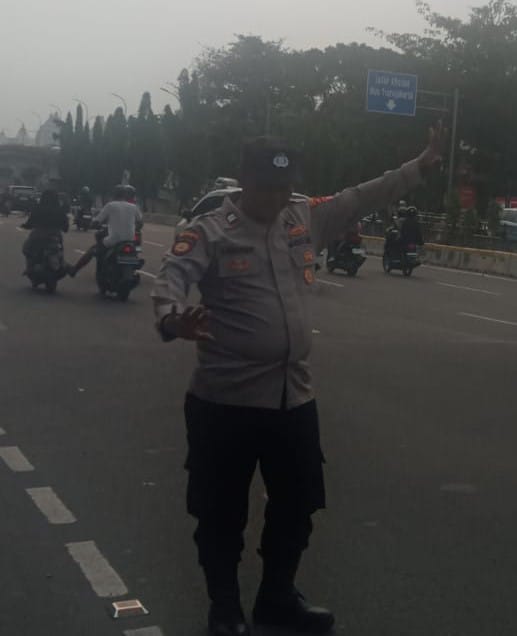 Jakarta Pusat – Unit Samapta Polsek Johar Baru Aiptu Afrizal Harahap Melaksanakan Pengaturan Lalu Lintas Sore hari di Jalan Letjend Suprapto Wilayah Galur, Johar Baru Jakarta Pusat. Kamis (12/9/2024).