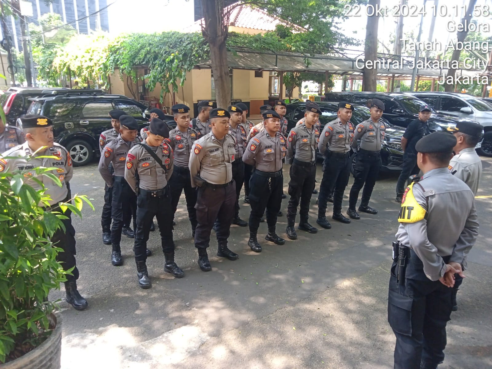 Kompol Pengky sampaikan Pesan dari Kapolres Metro Jakarta Pusat Kombes Pol Susatyo Purnomo Condro agar personel melakukan pengamanan dengan humanis, berikan imbauan untuk massa tetap tertib, lakukan tirai serta pengaturan arus lalu lintas untuk menjaga situasi tetap aman dan kondusif.