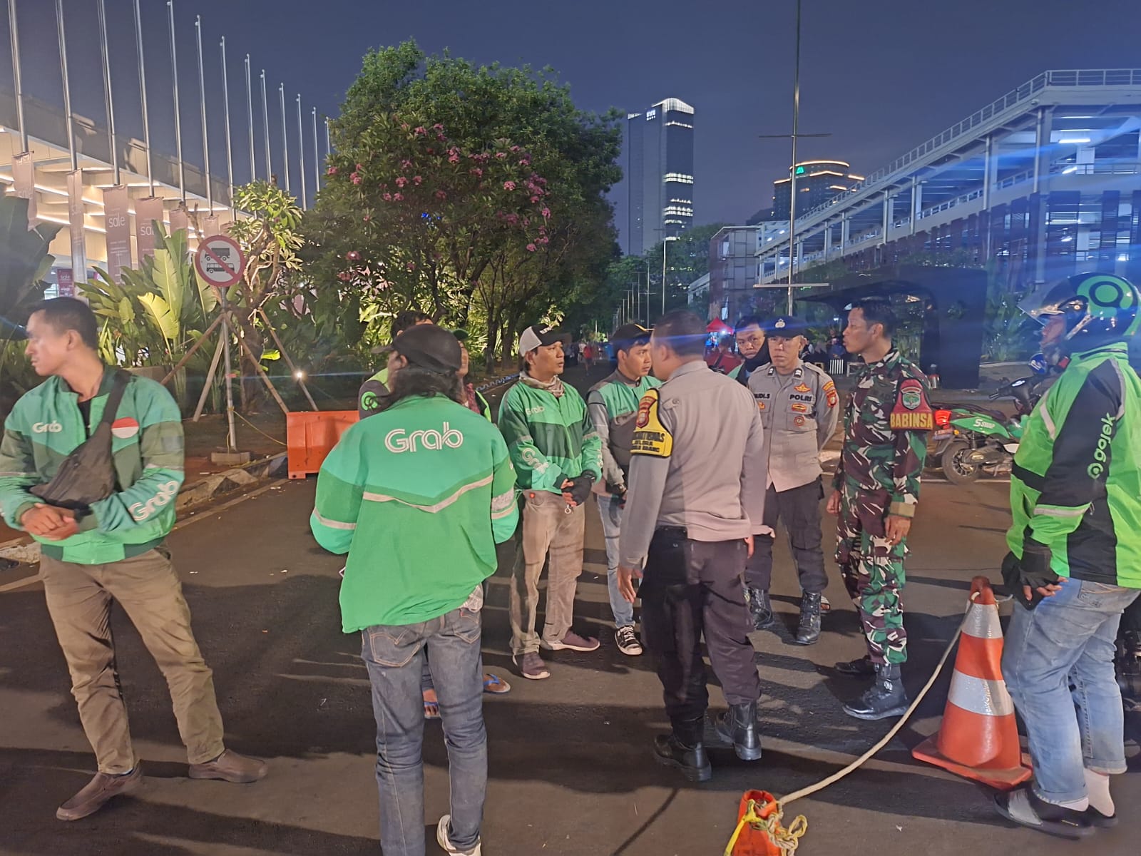 Bersama Tiga Pilar Aiptu Teguh sampaikan imbauan kamtibmas kepada para mitra ojek online di kawasan Gelora Bung Karno terkait rencana besok yang akan mengikuti aksi unras tentang tuntutan kenaikan tarif penumpang agar mengikuti unras dengan tertib dan tidak menggangu aktifitas masyarakat lainnya, agar tidak mudah terprovokasi ajakan untuk melakukan anarkis dan agar selalu ingat dengan keluarga yang selalu menanti kita di rumah.