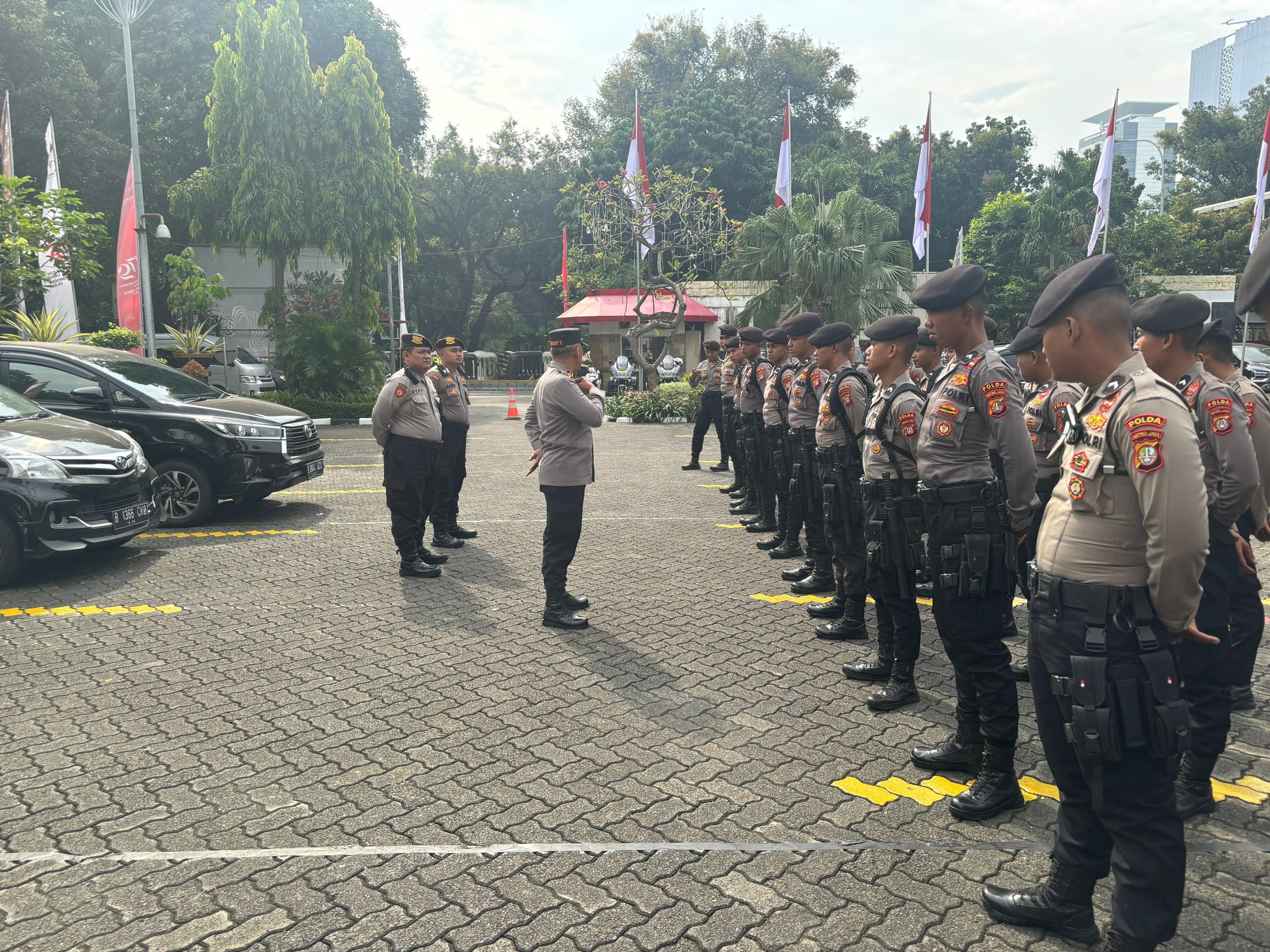 Jakarta Pusat – Kapolsubsektor Roxy Polsek Metro Gambir Iptu Agusni pimpin apel pengamanan aksi unjuk rasa di Sapta Pesona, Gambir, Jakarta Pusat. Rabu (28/8/2024).
