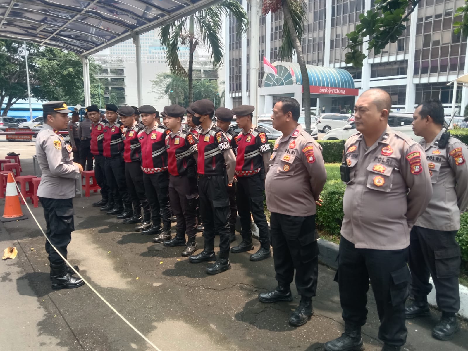 Kuat Pengamanan 18 Personel terdiri dari Pasukan Polda Metro Jaya dan Polsek Metro Tanah Abang. Selesai apel personel di standby kan di objek menunggu massa yang datang.