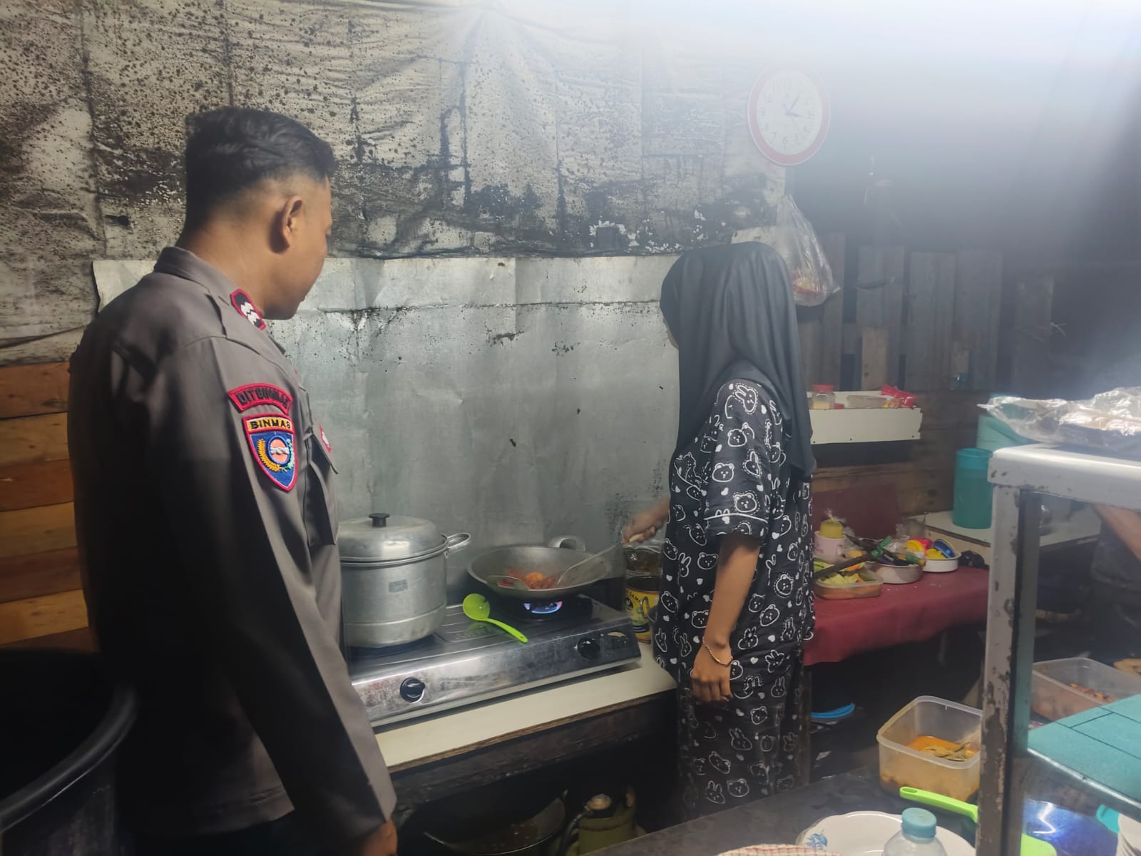 Aiptu Heri selaku bhabinkamtibmas melakukan sambang dan mengingatkan warganya yang memasak untuk persiapan sahur agar kompor selesai memasak pastikan betul dalam keadaan mati agar terhindar dari kebakaran.