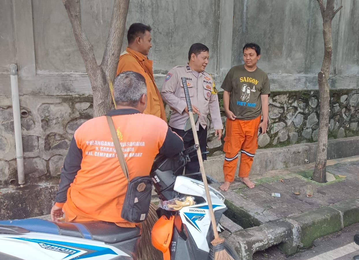 Jakarta Pusat – Bhabibkamtibmas Kelurahan Cempaka Putih Barat Aipda Ananta Dirga memyampaikan imbauan kamtibmas kepada petugas PPSU di Jalan Cempaka Putih Barat XX Cempaka Putih Jakarta Pusat. Kamis (29/8/2024)