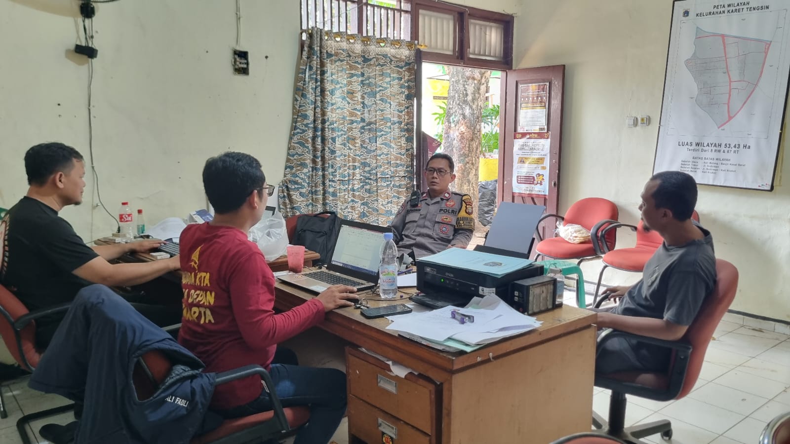 Jakarta Pusat – Bhabinkamtibmas Kelurahan Karet Tengsin Aiptu Suparmin melaksanakan sambang dan kunjungan ke Kantor PPS Kelurahan Jalan Karet Pasar Baru Barat VII RT 09/02 Kelurahan Karet Tengsin Kecamatan Tanah Abang Jakarta Pusat. Sabtu (09/11/2024).
