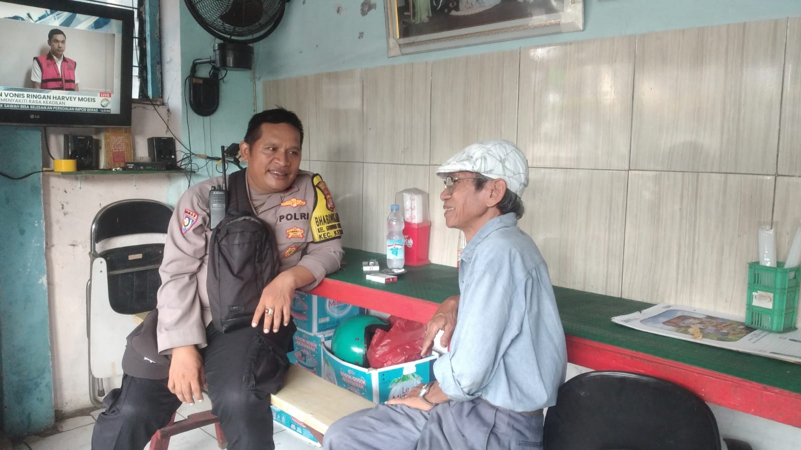 Selanjutnya Aipda Mahajin Simanjuntak bertemu dengan Bpk. Oji selaku Tokoh Masyarakat, guna mendengar saran dan masukan terkait situasi Kamtibmas di sekitar Kelurahan Gunung Sahari Selatan, Kemayoran Jakarta Pusat.
