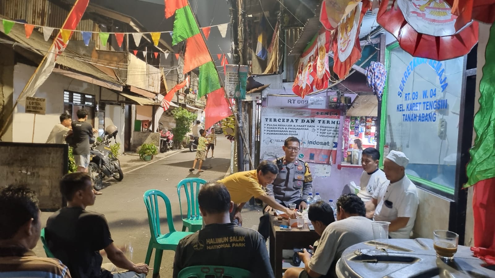 Jakarta Pusat – Bhabinkamtibmas Kelurahan Karet Tengsin Aiptu Suparmin melaksanakan patroli dialogis malam hari dan sambangi petugas satkamling di Poskamling RT 09 RW 04 Jalan Karet Pasar Baru Barat V Kelurahan Karet Tengsin Kecamatan Tanah Abang Jakarta Pusat. Rabu (28/08/2024).