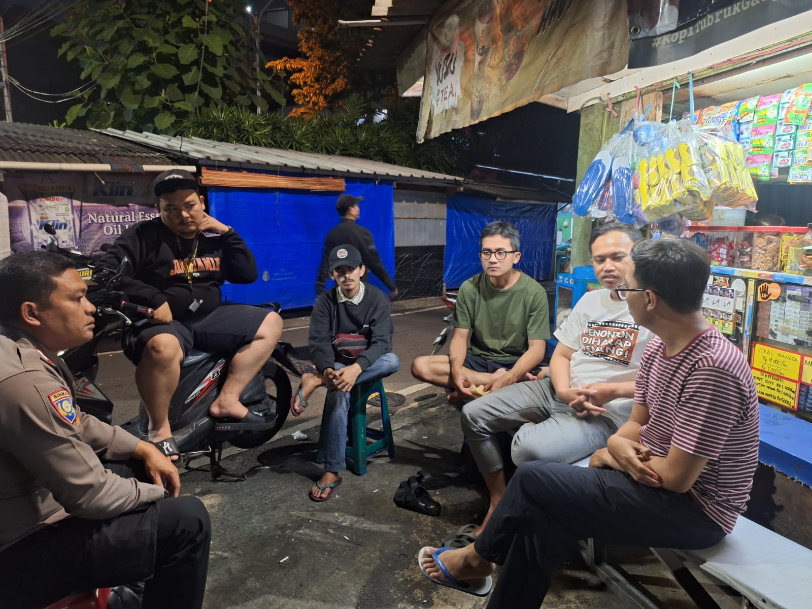 Jakarta Pusat – Aiptu Teguh Yuliyanto Bhabinkamtibmas Kelurahan Gelora melaksanakan patroli dialogis malam hari dan sambangi warga dan pemuda di Depan Pos RW 02 Jalan Gelora VIII RT 02 RW 02 Kelurahan Gelora Kecamatan Tanah Abang Jakarta Pusat. Jumat (30/08/2024).