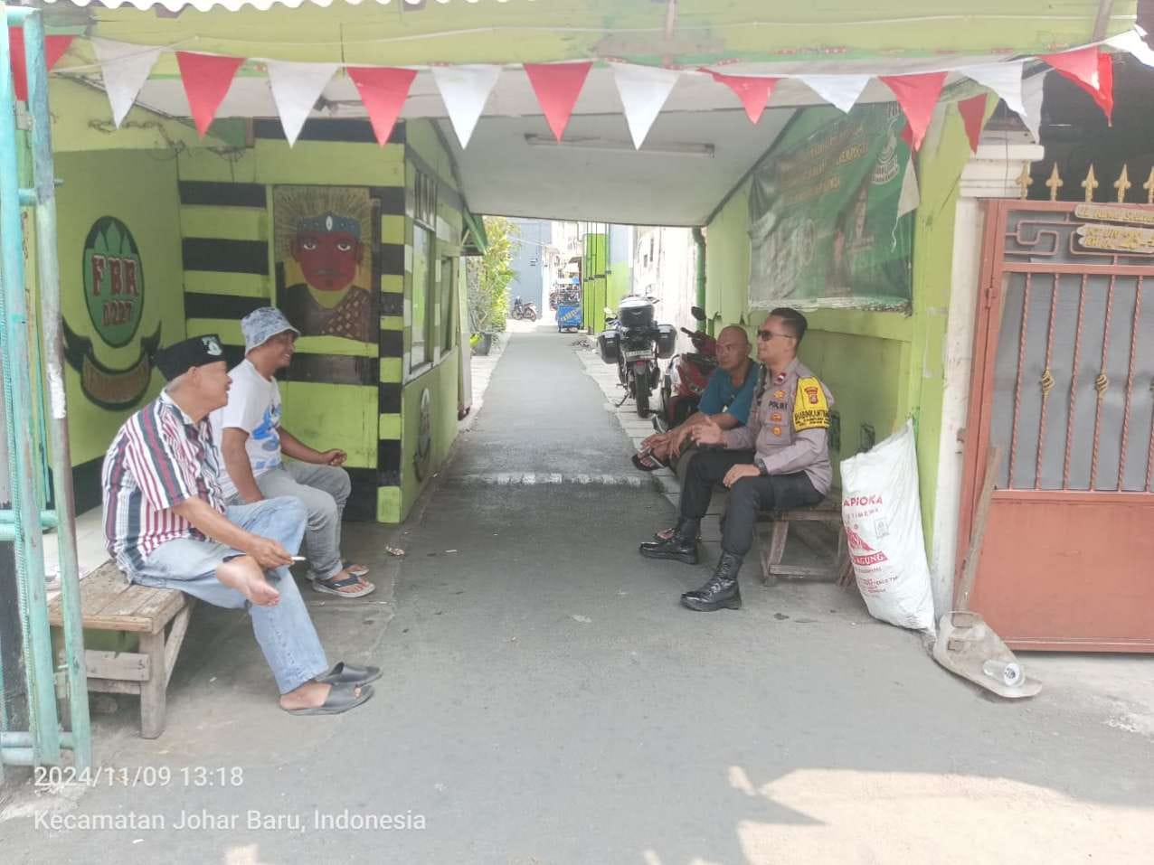 Jakarta Pusat – Bertempat di wilayah binaannya Jalan Rawa Selatan II perbatasan wilayah RW 04 dan RW 07 Kelurahan Kampung Rawa, Kecamatan Johar Baru Jakarta Pusat, Aipda Ikhwan Mulyadi, S.H., Bhabinkamtibmas Kelurahan Kampung Rawa Patroli Dialogis dan Sambangi Warganya, pada Sabtu sore (09/11/2024).