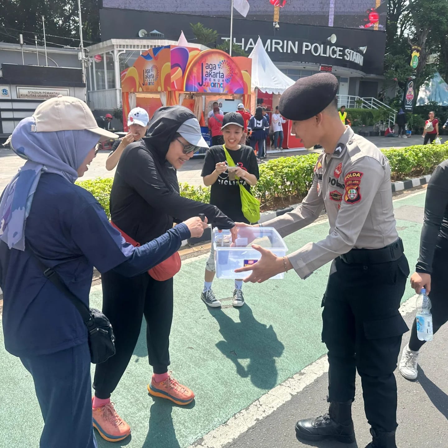 Tempojakarta.id,Jakarta – Direktorat Samapta Polda Metro Jaya membagikan sarapan gratis di area car free day (CFD) Bundaran HI, Jakarta Pusat (Jakpus). Warga yang tengah berolahraga pun antusias mendapat sarapan gratis.