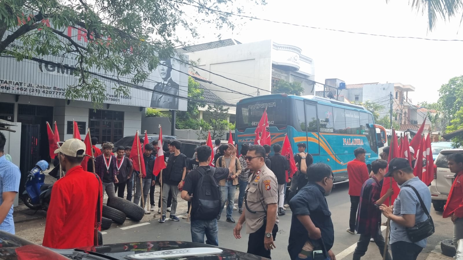 Polsek Johar Baru menurunkan lima personel dipimpin Panit Opsnal Intelkam Ipda Agung Prasetya untuk melakukan pengamanan di titik pemberangkatan. Massa telah diimbau agar tidak membawa ban bekas, tidak naik ke atap kendaraan, serta menjaga ketertiban selama perjalanan maupun saat kembali dari lokasi unjuk rasa. Hingga pemberangkatan, situasi berlangsung aman dan kondusif.