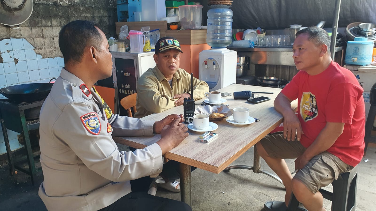 Tempojakarta.id,Jakarta Pisat – Suasana hangat terlihat di sebuah warung kopi di kawasan Pasar Baru, Sawah Besar, Jakarta Pusat, Bhabinkamtibmas Pasar Baru Aipda Bambang dari Polsek Sawah Besar menyambangi warga yang tengah berkumpul. Dalam kesempatan itu, petugas tak hanya bersilaturahmi, tetapi juga membuka ruang konsultasi mengenai keamanan dan ketertiban masyarakat (kamtibmas). Jumat (26/9/2025) sore.