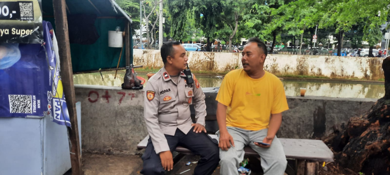 Selama patroli, Aipda Ali, bertemu dengan salah satu penjual, Bapak handoyo, dan memberikan beberapa himbauan penting terkait keamanan. Di antaranya warga diminta tingkatkan kewaspadaan terhadap potensi bencana alam di musim penghujan saat ini, jaga kebersihan jangan sampai buang sampah ke kali yang akan berpotensi terjadinya banjir.