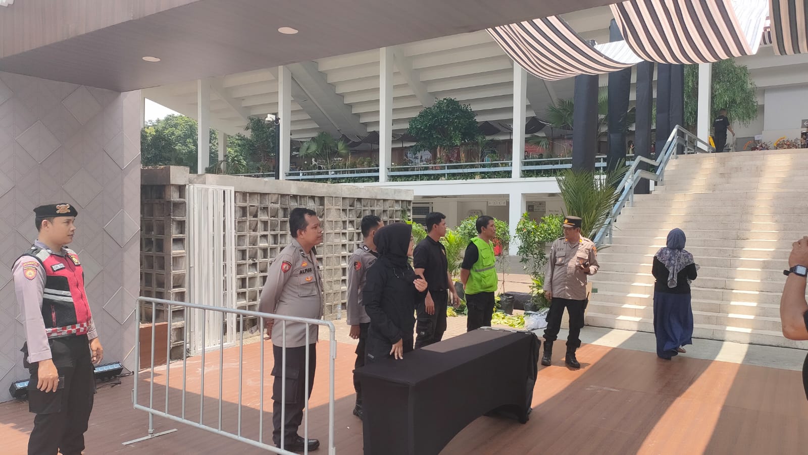 Aipda Alfian selaku Petugas Patroli 1051 melaksanakan patroli dan sambangi security event sampaikan imbauan kamtibmas agar senantiasa membantu menjaga keamanan dan ketertiban, monitoring dan patroli sekitar area gedung, berikan pelayanan kepada pengunjung yang datang, lakukan pemeriksaan secara humanis, lakukan imbauan kepada pengunjung agar selalu berhati-hati dan jangan meletakkan barang di sembarangan tempat dan lakukan tugas sesuai SOP.