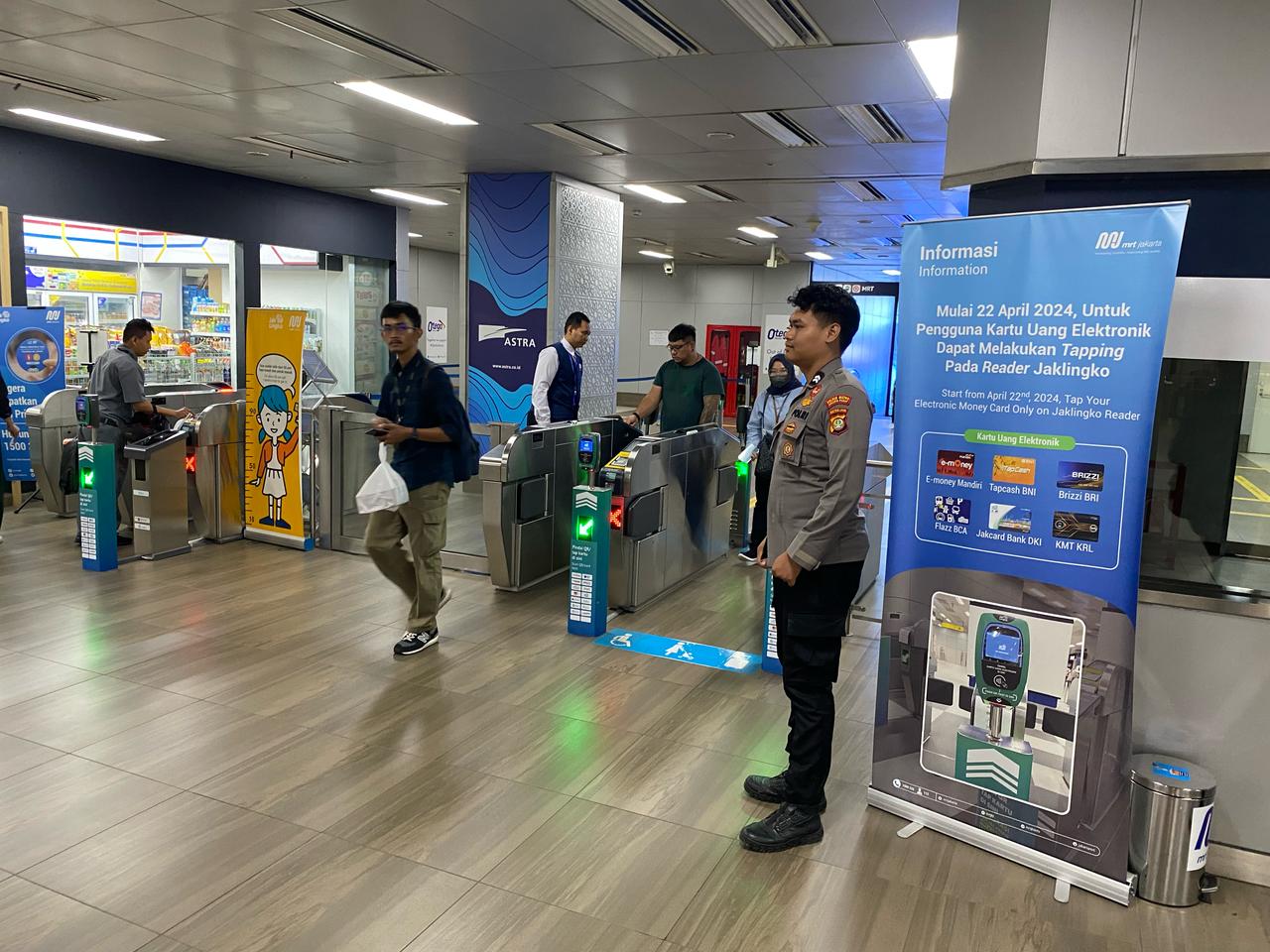 Bripda Bagus selaku Petugas Patroli 1052 melaksanakan patroli bersama Bapak Zainal petugas keamanan monitoring pengunjung pengguna MRT.