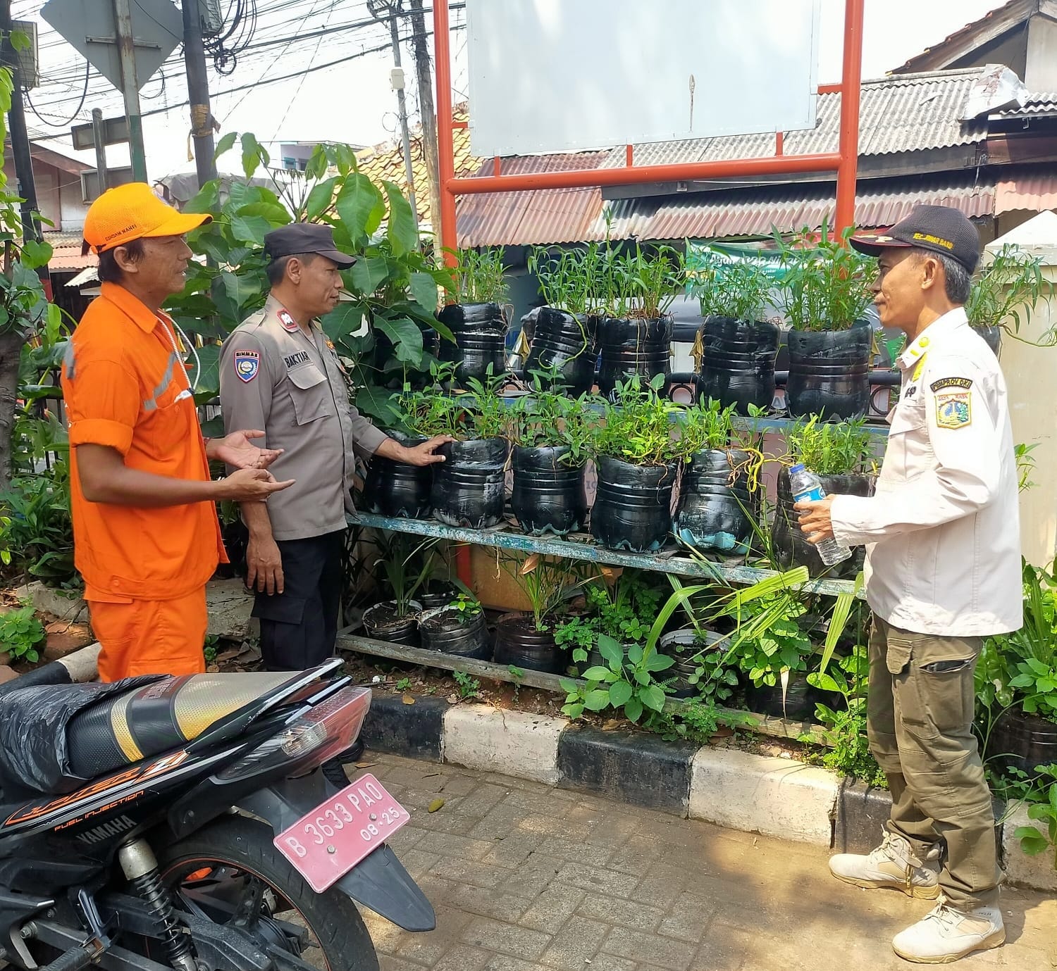 Jakarta Pusat – Dalam upaya meningkatkan ketahanan pangan di tingkat lokal, Bhabinkamtibmas Aiptu Baktiar Emri bersama Satpol PP bapak Hidayat melakukan dialog dengan bapak Gundam selaku petugas PPSU dan penggiat budidaya tanaman hidroponik sayuran jenis Kangkung di halaman kantor Kelurahan Galur Jalan Galur Jaya RT 01 RW 04 Kelurahan Galur, Kecamatan Johar Baru Jakarta Pusat. Jumat (08/11/2024.
