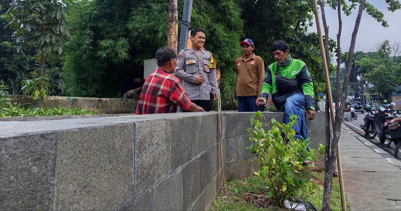 Selain melakukan pemeliharaan pohon, Brigadir Charis memberikan imbauan kepada warga terkait keamanan dan ketertiban masyarakat (Kamtibmas).