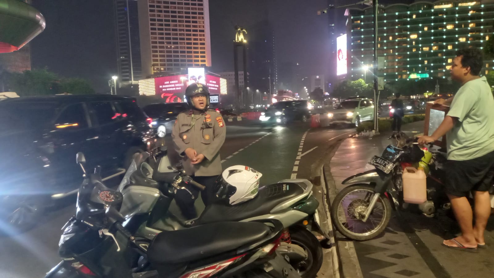 Jakarta Pusat – Kapolsubsektor Sarinah Aipda Andri berikan imbauan atas pengamanan dan ketertiban di kawasan sepanjang jalan MH Thamrin Menteng, Jakarta Pusat. Minggu, (10/11/2024).