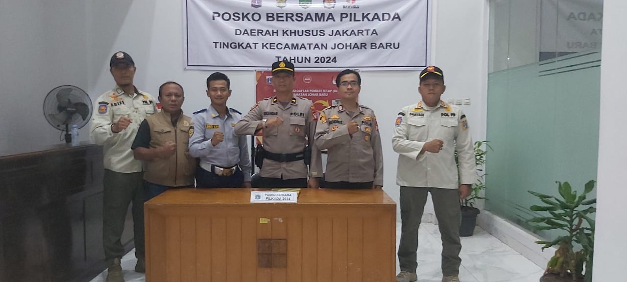 Jakarta Pusat – Upaya dalam mensukseskan dan kelancaran Pilkada, Polsek Johar Baru yang di pimpin oleh Ipda Iskandar Sofyan Lubis bersama Anggota Samapta, Satpol. PP, Dishub dan FKDM memperketat pengamanan gudang logistik Pilkada di posko kantor Kecamatan Johar Baru, Jalan Johar Baru Utara I RW 03 Kelurahan Johar Baru, Kecamatan Johar Baru Jakarta Pusat. Minggu (03/11/2024).