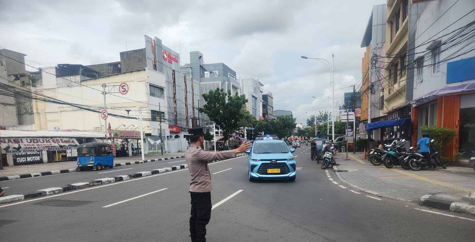 Polisi Laksanakan Ploting Lalin di Pertigaan Jalan Biak, Arus Sore Hari Terpantau Lancar