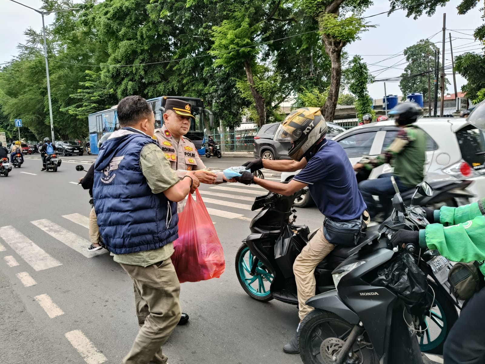 Hal ini untuk membantu para pengguna jalan yang tengah menjalankan ibadah puasa, dengan membagikan makanan berbuka puasa.