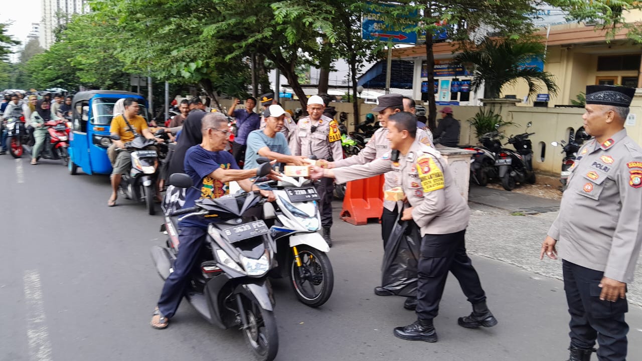 Kegiatan ini dipimpin langsung oleh Kapolsek Kemayoran Kompol Agung Ardiansyah, yang turut turun ke jalan bersama anggotanya untuk membagikan makanan berbuka kepada masyarakat.